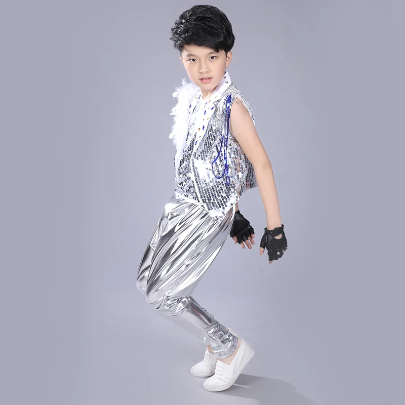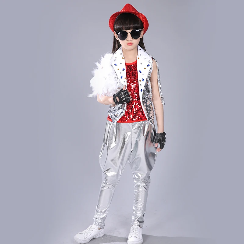 ORIGINAL Songyuexia Sparkly Sequin Jazz Dance Costume Children Girls hip-hop Dance Suit Modern Dance Stage M